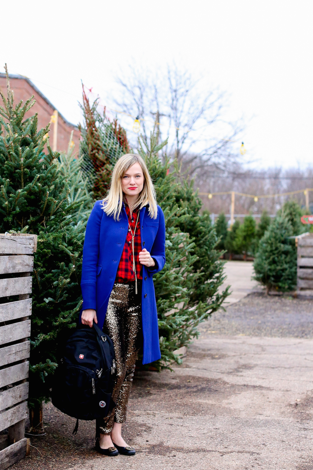 J.Crew Jacket // Sparkly Pants {similar} // Tory Burch Riva Flats // Kendra Scott Tassel Necklace // Backpack c/o SWISSGEAR Now that it’s December 1st, the holidays are officially almost here {and I couldn’t be more ready …